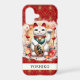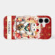Make a statement with this iphone 17 phone case that features a Lucky Cat with red flowers around it on top of a gold and red background. It's modern yet traditional Japanese Maneki-neko is designed to attract good fortune, prosperity and customers into your business. The left paw raised brings customers and wealth and the white cat symbolises general happiness. It becomes uniquely yours with your name in a CAP font in black. Invite luck and prosperity into your life!