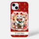 Lucky Cat With Red Flowers Monogrammed Case-Mate iPhone Case