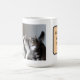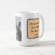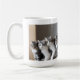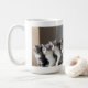 Enjoy your morning coffee with this funny tabby lucky cats' photo mug, a gift dedicated to a cat lover, humor quote in a peach rectangle round corners shape with grey borders, cats' photo is generative content. Customize the photo with your own cat's one, using the Replace Background in Edit options