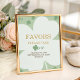 Let guests know to take a treat with this "Favors" table sign. Featuring the charming watercolor shamrock and gold horseshoe design. Matches the "A Little Lucky Charm" baby shower suite for a professional and festive display.