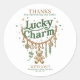 This adorable Lucky Charm Baby Shower Sticker is the perfect finishing touch for your celebration! Featuring the heartfelt message, "Thanks for showering our little lucky charm with love! this sticker adds a sweet and thoughtful touch to favor bags, envelopes, and party décor. With a charming design inspired by luck and love, it’s a delightful way to express gratitude to your guests for celebrating your little one’s arrival. Customize with the mom-to-be's name and party date for a personal touch. Easy to peel and stick, these high-quality stickers bring a magical touch to your special day!