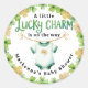 Add a festive finishing touch to your party favours with this Lucky Charm baby shower sticker! Designed with watercolor shamrocks and a sweet baby outfit, it's the perfect accent for cupcakes, treat bags, or envelopes at your Irish or St. Patrick’s Day-themed shower.