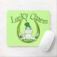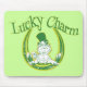 St. Patrick's Day Lucky Charm Leprechaun funny t-shirts, sweatshirts, hats, stickers and more. Leprechaun sitting on horseshoe holding beer. Show your Irish pride, Celtic humour.