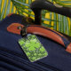 I was happy with the acrylic tag but it came with a thin leather strap to attach the tag to luggage (like a cat collar). I replaced the strap with a metal ring off of a key ring as the leather strap would come undone or break easily as luggage is sometimes handled without much care by airlines. Printing is great. Colours and positioning of the design I put on the tag were perfect. Very pleased.