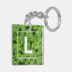 Lucky clover monogram, green meadow shamrock key ring
