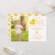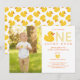Celebrate a sweet milestone with this charming Lucky Duck first birthday photo invitation, featuring an adorable duck illustration and playful “One Lucky Duck” design. This modern layout pairs a personalised photo with warm yellow and soft orange tones, creating a joyful and memorable invitation for your little one’s special day.