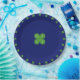 Lucky Geometric Four-Leaf Clovers on Blue Paper Plate