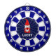 Lucky gnomw with heart on blue and white Dart Board. Text can be personalised.