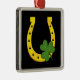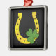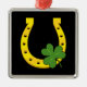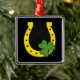 Lucky Golden Horseshoe with Shamrock on Black Metal Ornament