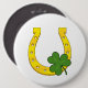 Lucky Golden Horseshoe with Shamrock on White 6 Cm Round Badge