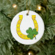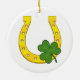 Lucky Golden Horseshoe with Shamrock on White Ceramic Ornament