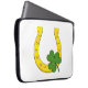 Lucky Golden Horseshoe with Shamrock on White Laptop Sleeve