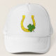 Lucky Golden Horseshoe with Shamrock on White Trucker Hat