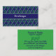 Several lucky grasshoppers jump across your business or calling card…making friends between the stripes. The business card is royal blue with green grasshoppers and green and white stripes. The single grasshopper on the back side of the card may be replaced by your own logo or removed.