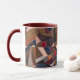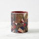 This striking two-tone mug features the beautiful patchwork crazy quilt design of an unidentified early twentieth century American craftsperson. Enjoy the intricate vintage details - including a horse, butterfly, flower and cat. See if you can spot the horseshoe, too. According to legend, a horseshoe facing upwards in a "U" shape is said to keep evil out and bring good luck into your home! Featured here is a maroon handle/interior, but black is also lovely with the quilt tones, or select another colour you like from the available options. A perfect gift for a quilt-lover or antique-lover, for a housewarming, or for a fan of Americana. (Original quilt: Smithsonian American Art Museum, Gift of Raymond Vlasin and family, with deepest appreciation for the many friends with whom Claire Vlasin quilted).
