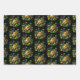 Wrapping paper sheets with a St. Patrick's Day themed image. A black and gold horseshoe sitting in a bed of green clover with shiny gold coins.