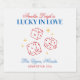 This design features trendy bold text with dice and a lucky in love casino theme.
