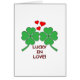 Drawings of four-leaf clovers with heart shapes floating over them.