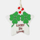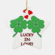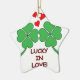 Drawings of four-leaf clovers with heart shapes floating over them.