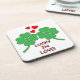 Drawings of four-leaf clovers with heart shapes floating over them.