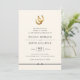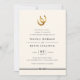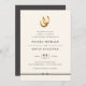 Rustic wedding invitation invitation features dark plum brown lettering with in chic block and italics, with a pair of golden watercolor horseshoes at the top. Knotted rope detailing along the bottom completes the look. We recommend the Artisan Felt Ecru paper for a rustic luxe texture and warm cream finish.