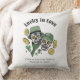 This Irish "Lucky in Love" throw pillow features hand-drawn sugar skulls outfitted in Irish hats and scarves surrounded in gold shamrock coins and green clovers. Elegant white background. Personalise with couple's names and wedding date. Ideal for newlywed, anniversary, wedding, wedding shower, bridal shower, etc.