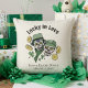 This Irish "Lucky in Love" throw pillow features hand-drawn sugar skulls outfitted in Irish hats and scarves surrounded in gold shamrock coins and green clovers. Elegant ivory background. Personalise with couple's names and wedding date. Ideal for newlywed, anniversary, wedding, wedding shower, bridal shower, etc.