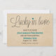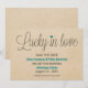 Fun and charming Lucky in Love Save the Date Announcement featuring a whimsical typography design accented with little teal hearts and a faux textured paper background. This chic save the date invite is perfect for announcing your wedding with modern flair! Easy to customise, simply add the details of your special day in the fields provided. Click on the "Customise It" button to find additional personalisation options.