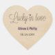 Fun and charming Lucky in Love Stickers featuring a whimsical typography design accented with little purple hearts and a faux textured paper background. Easy to customise, simply add the details of your special day in the fields provided. Click on the "Customise It" button to find additional personalisation options.