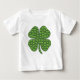 Lots of tiny clovers decorate this large four-leaf clover or shamrock leaf.