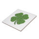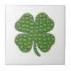 Lots of tiny clovers decorate this large four-leaf clover or shamrock leaf that is sitting on a white background.