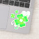 A pretty, four leaf clover with ombre shades of green accented with elegant swirls and two smaller green shamrocks. It's a touch of good luck for St. Patrick's Day! Customise it on this vinyl kiss-cut sticker in two background options. Great for scrapbooking and more!