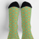 This awesome pair of patterned crew socks features a graphic image of a gold coin with two shades of gold. The outer circle has a rough texture. Inside the inner circle of the coin is a textured golden shamrock made up of 3 leaves and a stem.