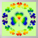 Unique and cool Irish shamrock poster for the luck o' the Irish in bright rainbow hues. Light green background, which can be changed.