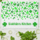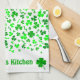 Personalize this Irish themed kitchen towel featuring a shamrocks and lucky clover pattern with a name or expression.