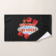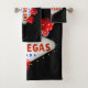 Lucky Las Vegas bath towel set (wash cloth, hand towel, and large bath towel) featuring an original art graphic by urbanphotos.net, the famous Welcome to Fabulous Las Vegas sign with red dice.