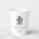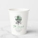 These white "Lucky Little Shamrock" gender neutral baby shower paper cups feature a chic hand-drawn Irish Victorian baby carriage with adorned with a shamrock and soft green tones. Personalise with event details. Ideal for March baby showers, welcoming an Irish baby or a celebration around St. Patrick's Day!