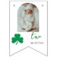Celebrate your little lucky charm with this stunning Lucky One First Birthday Photo Bunting Banner featuring adorable shamrock accents. Perfect for St. Patrick’s Day themed birthdays, this customizable banner allows you to showcase your baby’s monthly photos in a beautiful party display. Ideal for cake smash parties, Irish-themed celebrations, baby first birthday décor, and photo backdrops. Create a memorable and Instagram-worthy celebration with this unique, personalized birthday bunting banner.