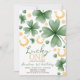Celebrate your "Lucky One" with this charming first birthday invitation. Featuring watercolor green shamrocks, gold horseshoes, and lucky coins, it’s perfect for a St. Patrick's Day themed party. Elegant script and a clean white background make this design pop. Easily customize with your daughter's name and event details.