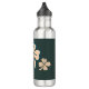 Dark Green Lucky Shamrock Clover Drawing St. Patrick`s Day water bottle. Hand-drawn clovers with four leaves for the luck on dark green background.