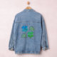 Green Lucky Shamrock Clover Luck Denim Jacket. Four green shamrocks. Clovers with four leaves for the luck.