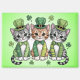 Adorable Irish-themed kitten trio dressed in green with shamrocks and leprechaun hats, perfect for festive St. Patrick’s Day gifts and party decor. (Design code-47474).