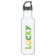 A lucky green and gold graphic that is written on a white water bottle with a St. Patrick's Day design. The perfect gift for a loved one, purchase yours today!
