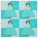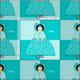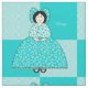 Lucy is a pretty young lady from days gone by. Her dress and hair bow are made of aqua and white flowers. The background is squares of aqua polka dots on a white background and alternating solid aqua squares. You can replace Lucy's name with your child's name for a personal touch.