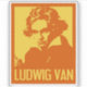 Bright colours add a modern pop art spirit to this graphic stylised portrait of the famous classical musical composer Ludwig Van Beethoven. The portrait is designed in bright orange and golden yellow and has the artists first name placed below in a bold, clean font. Perfect on music folders, laptops, guitar cases - even your car! Eye catching, contemporary, and unique!