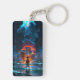 Embark on a legendary journey with this exquisite Anime Voyage Acrylic Keychain. The design captures a breathtaking cinematic moment of a pirate ship illuminated by a glowing sunset against a mysterious dark sea, inspired by the grand spirit of One Piece.
