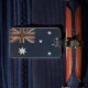 Bag tag with cool flag from Australia. The best way to identify your luggage when travelling the world. We change and add both text and colours, as well as size and placement, all upon request. Contact us with your unique needs and we do the rest!