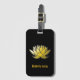 Luggage tag with lotus flower illustration.