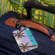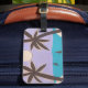 This luggage Tag with an identification insert is designed with a paper art depiction of silhouetted palm trees and a lavender sky.