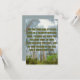 This greeting card showcases a design that features a Bobby Jones Soft print font with green letters dark green outline featuring the "Luke 17:6" KJV bible scripture verse over this picture with a ground up view displaying a collection of tress in a forrest surrounded by bright green grass under a light blue sky in the background with a light blue reverse back plus green letters of this faith based theme. This verse is referencing the Book Of Luke 17th chapter showing the 6th verse in this bible scripture quote theme from the King James bible with the words "The Will Of God!" on the back. Made with high quality, full colour printing on a 3.5" x 5" (portrait) or 5" x 3.5" (landscape) matte paper made and printed in the USA.